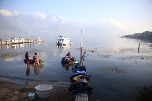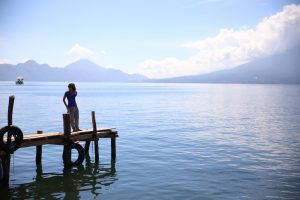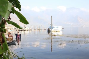 On descend du bus à Panajachel et on commence par se taper un énorme pti dej comme je commence à sérieusement les aimer : œufs brouillés, guacamole, tartines, café et re-guacamole…