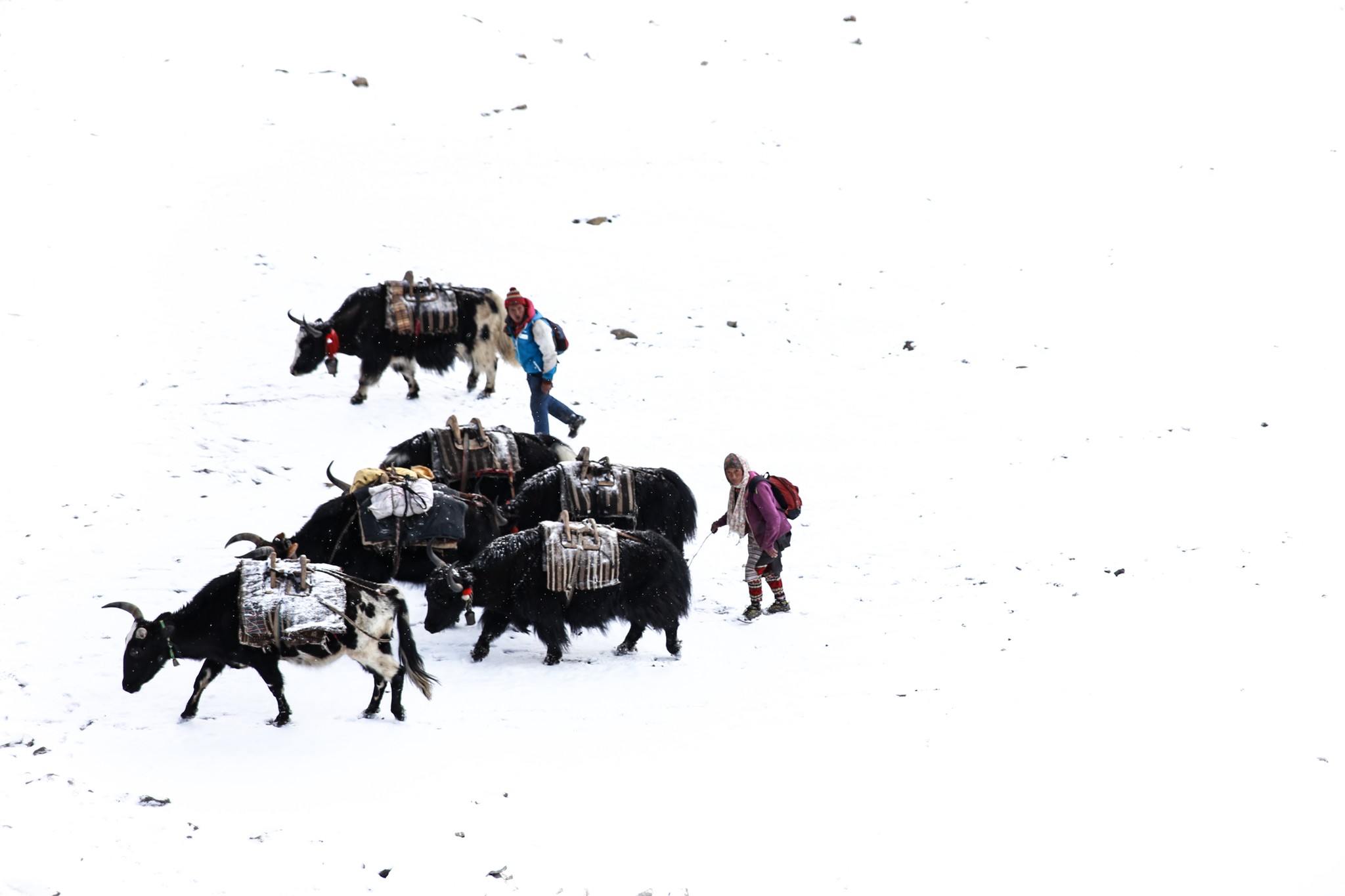 Le chemin descend un moment avant la remontée finale de 600m encore (oui le Népal c’est ca, ca descend et ca monte mais globalement ça monte…). On arrive enfin à Tengboche où il commence à neiger doucement. Ici se trôuve le plus grand monastère de la vallée, magnifique et au loin on devine par intermittence l’Everest et le Lotse, les deux monstres, c’est par là bas que les choses sérieuses se déroulent. Finalement on se réfugie dans le Lodge car c’est la tempête de neige, on espère que ça ne tiendra pas trop le lendemain !!