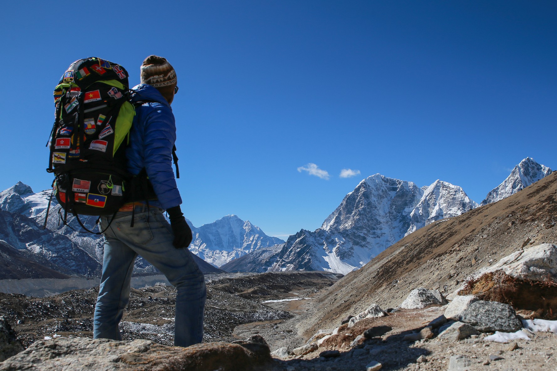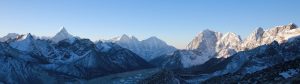 Aujourd’hui levé 8h, c’est la grasse mat ! Soleil au dehors encore une fois. L’épreuve de quitter le pyjama faite je me dépêche d’aller au petit dej, près des fenêtres qui donnent au soleil. Café, porridge et avec l’équipe de la veille on se met en route pour une petite étape, rejoindre Gorak Shep (5100m), le village final du trek.