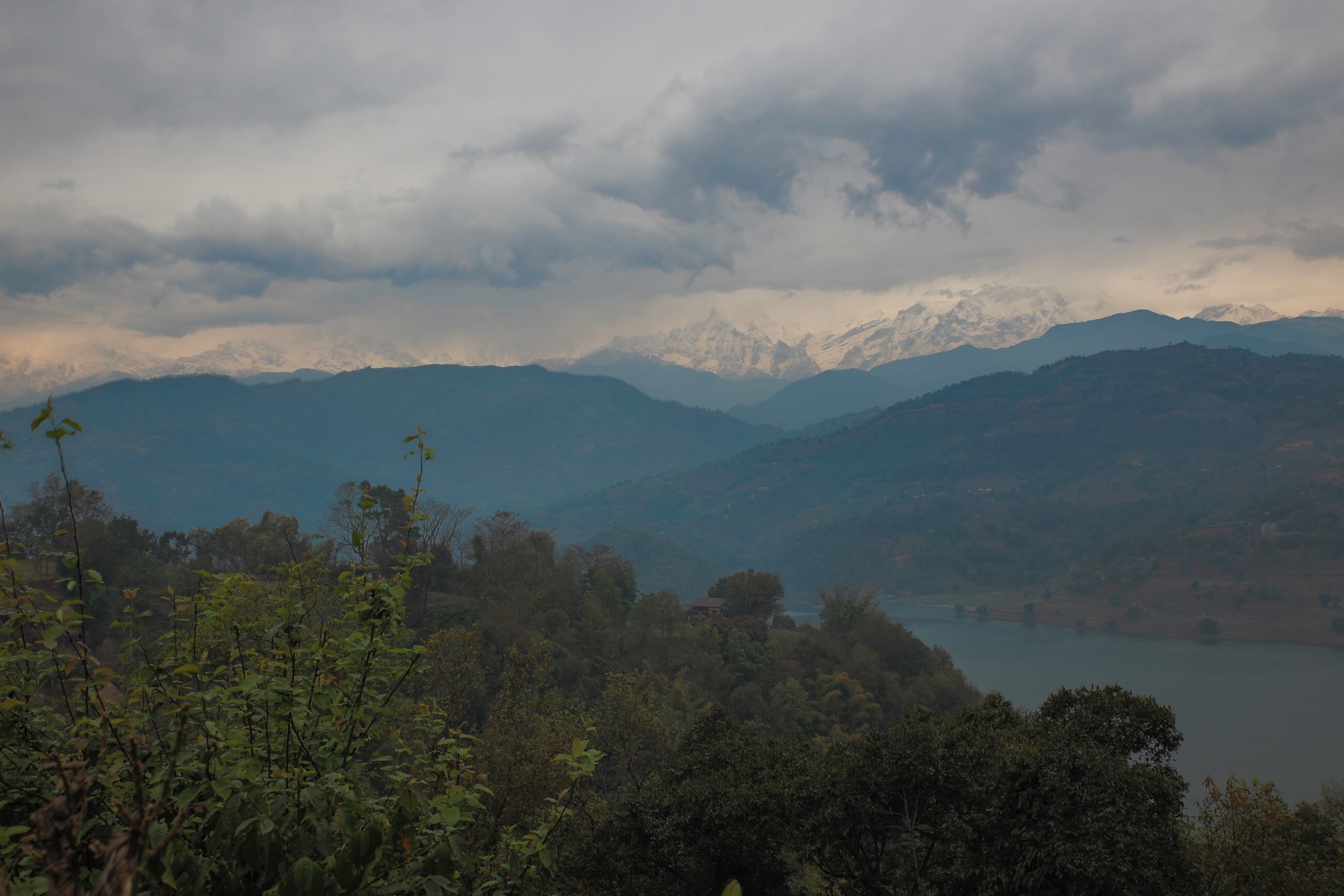 Je prends donc le bus, une vraie mission, pour monter à Sarangkot, un village au dessus de Pokhara, tout au sommet d’une petite montagne, c’est le meilleur point de vue du coin pour voir tous les Annapurnas. Les gens partent souvent en tour organisés à 4h du mat pour aller voir le levé de soleil mais je préfère largement y monter la veille pour être sur place. Je finis à pied sous la pluie battante. Arrivé à une auberge avec ce que je soupçonne être une belle vue pour le lendemain (pour l’instant c’est tout bouché) je prends un dîner et file me coucher, pessimiste pour le temps du lendemain. Au matin je suis réveillé par le soleil qui me tape dans la figure. Ni une ni deux je saute dans un pantalon et cours dehors. Alors la vue n’est pas du tout en face de l’hôtel mais complètement derrière, je monte alors le reste du village pour aller au point de vue où il y a déjà pas mal de gens, le soleil fini de se lever, la vue est juste incroyable, tous les grands sont là, tout blanc, et en contrebas Pokhara encore sous la mer de nuages. Je reste au moins une heure, heureux, au Nepal la montagne se renouvelle chaque jour, rebat les cartes météo tous les soirs…
