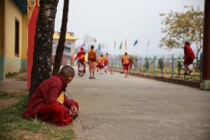 Le lendemain je décide de louer une moto. Ma première destination est un monastère de réfugiés tibétains à une quinzaine de kilomètres. Peu après y être arrivé je rencontre un jeune moine photographe, il me montre son équipement et me demande des conseils techniques, on passe une bonne heure à faire des tests et des photos des gamins moines qui nous regardent curieusement ! Ensuite je me rends à Begnas, un petit bled au milieu de lacs de montagnes. Conduire en moto au Népal est une vraie expérience et il faut être vigilant, et pas trop pressé si on veut rester en vie, il faut aussi accepter d’amasser 1,7 kg de poussière et de diesel dans ces poumons… A Begnas je débarque dans une petite auberge perdue dans les collines, les gens y sont adorables, ils produisent leur miel, leur café et même leur miel de café ! Quand j’arrive deux personnes sont là à fumer ses pétards depuis plus de 200 jours, et ce ne sont a priori pas les seuls à avoir choisi ce spot comme endroit de « repos… ». Depuis la terrasse sur le toit on voit la chaîne des Annapurnas et le fameux Machapuchare en forme de rasoir, l’équivalent local de l’Ama Dablam. Je comprends qu’on ait envie de rester poser ici, plein de ballades autours, les lacs, le calme, la vue… Moi j’y passe seulement une nuit paisible (après m’être débarrassé de l’ééénorme araignée), le lendemain je r’enfourche ma moto pour la rendre à midi, snif, adieu la liberté !