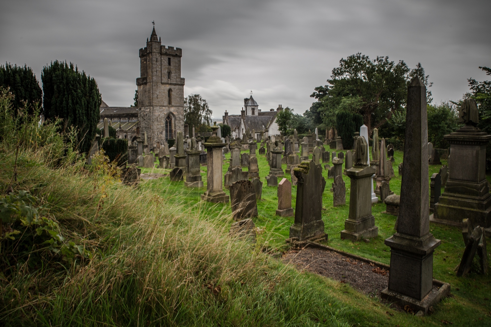 Le temps est écossais, mais ca ne nous fait pas peur, hier on a eu 4 saisons dans la même journée. On prend la direction de Stirling qui sera notre première étape. A peine garés on croise un type en kilt qui va chercher son pain (ou quelque-chose d’écossais et de similaire), ici c’est normal (non on a pas regardé dessous, mais il fait frais). Le temps est un peu nuageux, l’église lugubre, situation idéal pour aller faire des photos dans un cimetière ! On admire de là le beau château qui domine la ville.