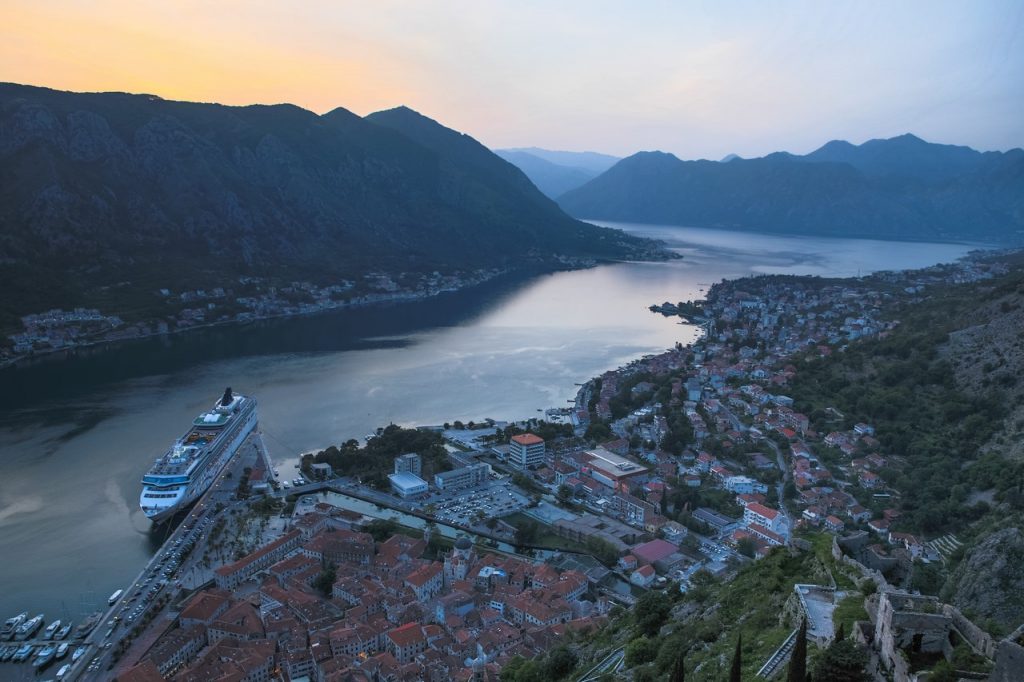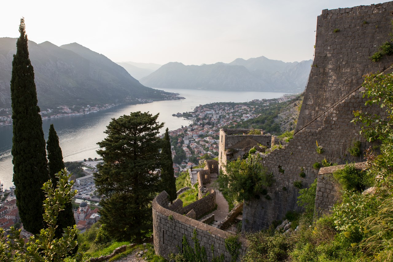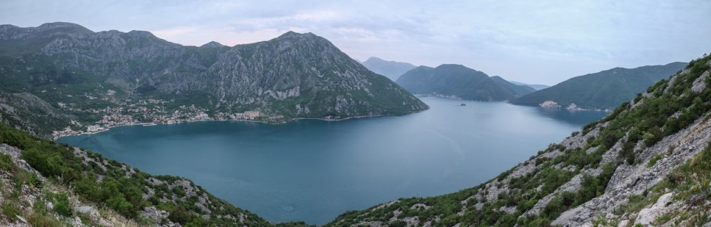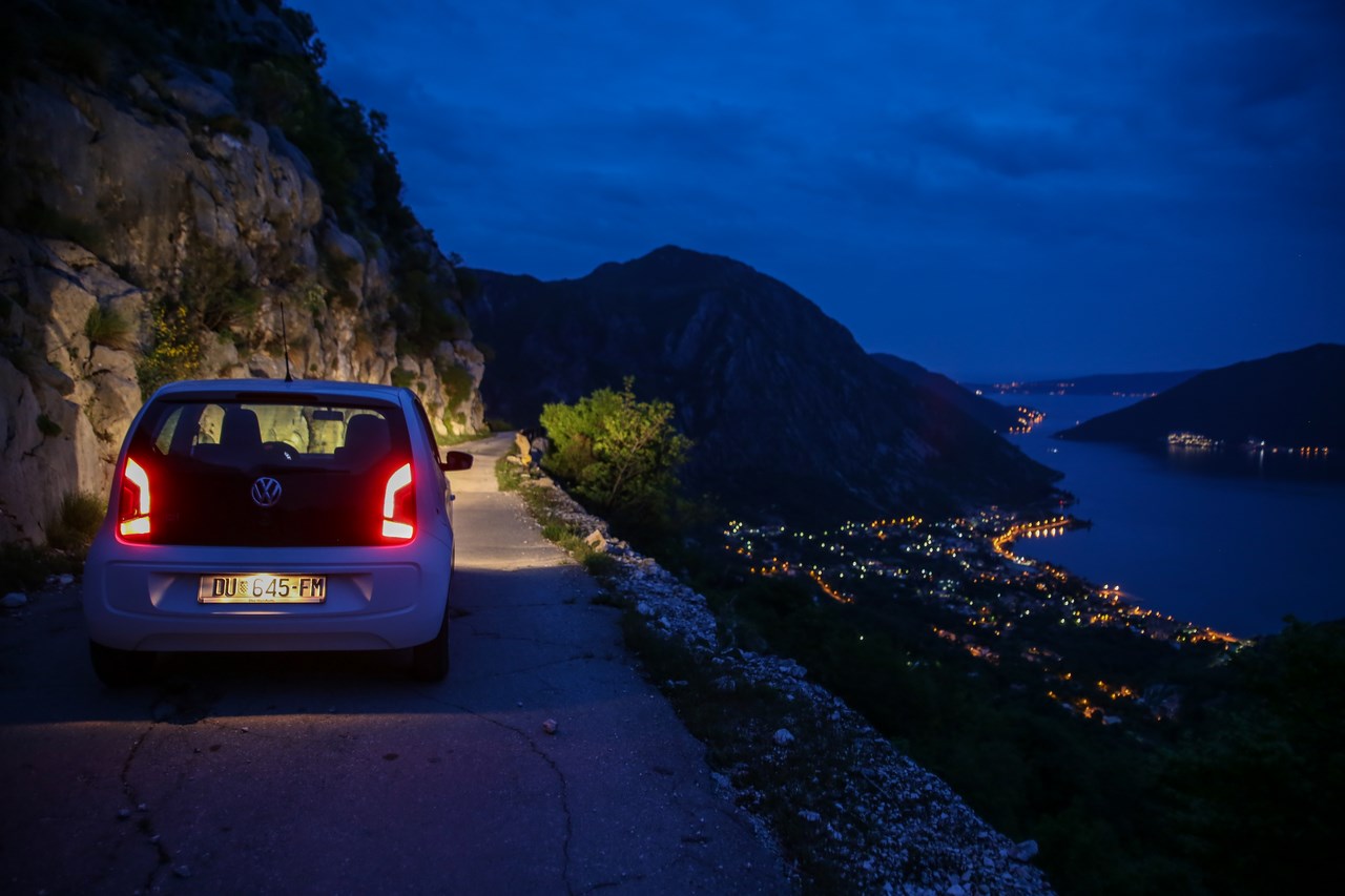 Il est déjà un peu tard et le soleil va pas tarder à se coucher alors on cherche un point de vue un peu en hauteur pour en profiter. Escapade en voiture le long de la baie de Kotor, on identifie une ruine en hauteur mais une fois arrivée, c’est plutôt Deception Point, pas de vue et le soleil disparait. On redescend par une route défoncée, tout en mini-lacets, très raide mais avec une vue magnifique sur la baie et le village de Risan qui commence à s’éclairer. Finalement ce sera petites courses et dîner sur la terrasse !
