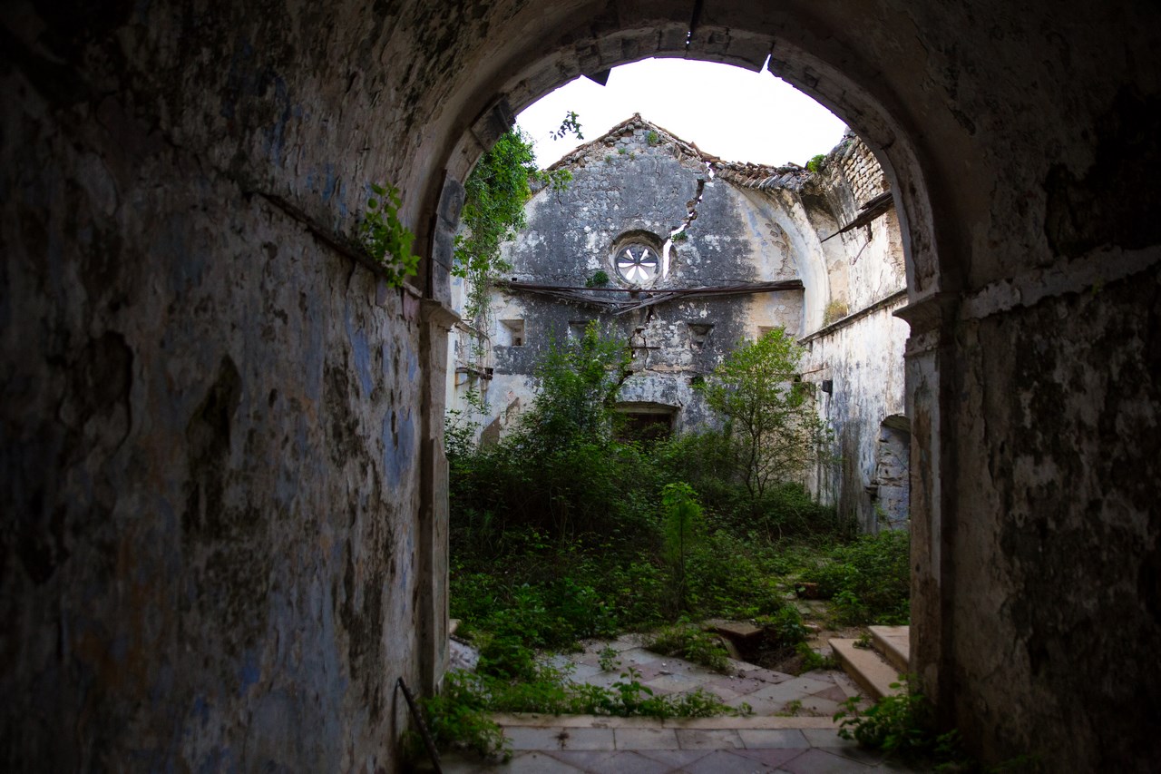 Après 40mn de galère et d’hésitation, on y arrive, perdue dans la forêt et complètement en ruine, une belle église toute abandonnée, la vue est magnifique, on est évidemment tout seul, avec l’impression que tous les caveaux à moitié ouvert sur lesquels on marche vont nous engloutir. Le toit est à moitié tombé, un pan entier menace d’en faire autant, on marche le pas léger, on ne touche rien, on disparaît comme on est venu…