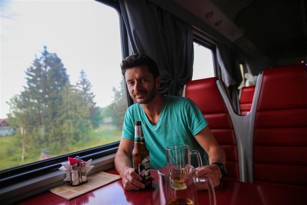 La journée on lit, retouche un peu les photos, dessine, écrit, on boit des cafés du thé on grignote, on va se dégourdir les jambes lorsque les arrêts sont de plus de 10mn. Le soir petite bière fraîche au wagon restaurant, ca entraîne les rencontres ! Le soir petite série sur l’ordi ! Évidement on regarde aussi le paysage, qui change de temps en temps, forêts, bouleaux, petits villages perdus, grandes villes grises, une rivière de temps en temps, des bouleaux…