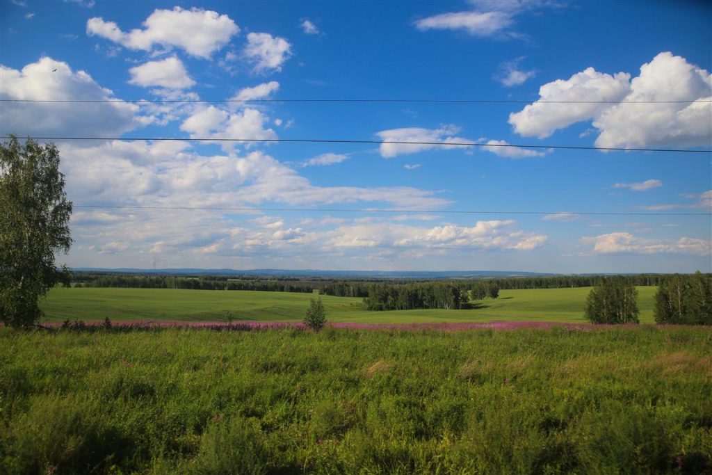 Le lendemain c’est notre dernière journée dans le train, le paysage à changer, moins de forêts de bouleaux (pfff et là je regarde par la fenêtre et je vois des bouleaux), des plaines, la campagne (et au loin de la forêt de bouleaux)…