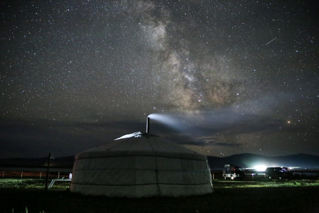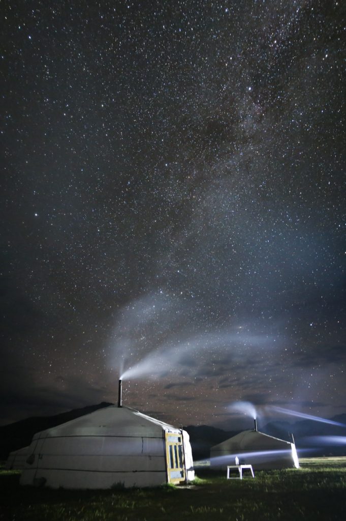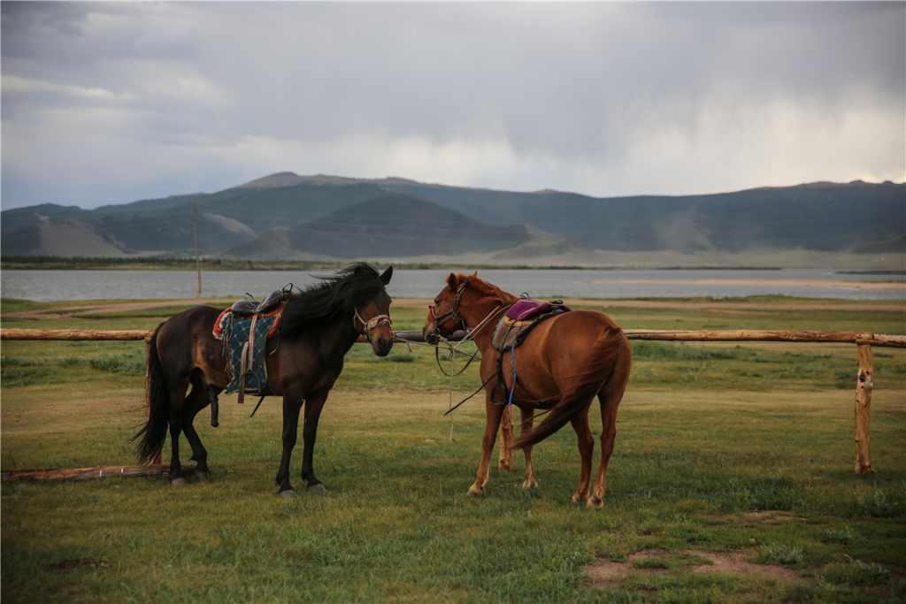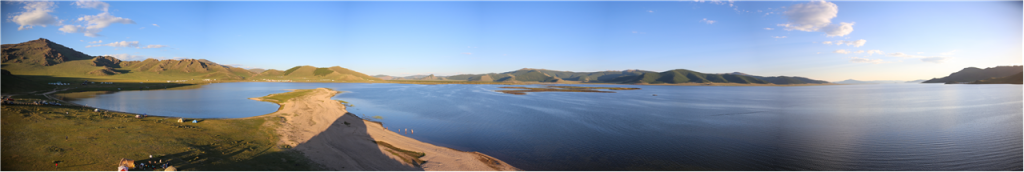 Au terme d’un loooong trajet avec pour finir une heure à se faire ballotter aux quatre coins du van, nous voici au bord du lac Blanc, Terkhiin Tsagaan Nuur. C’est un lac volcanique, d’ailleurs son papa est juste à côté, il mesure 16km de long, entouré de petites montagnes, un aspect très sauvage, on aime ! On plante les tentes sur la côte nord-est près d’une petite péninsule sablonneuse, autrement dit, la plage… D’ailleurs on est pas seul, on y retrouve un couple de français avec qui on avait bien sympathisé à Irkoutsk en Russie.