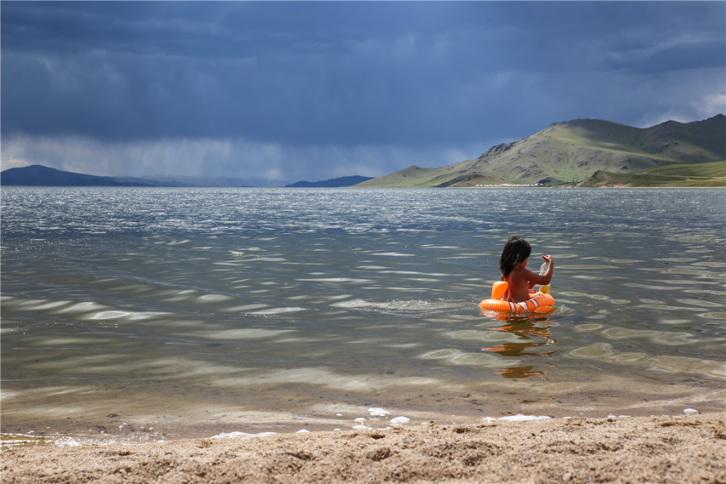 A peine rentré direction la plage, plouf dans le lac, l’eau est meilleure qu’au Baikal ! On a juste le temps d’en profiter avant qu’une tempête nous passe dessus ! Jolie ballade après la tempête sur la rive nord, temps très venteux, ça change le paysage, on se croirait autour d’un lac d’Ecosse…