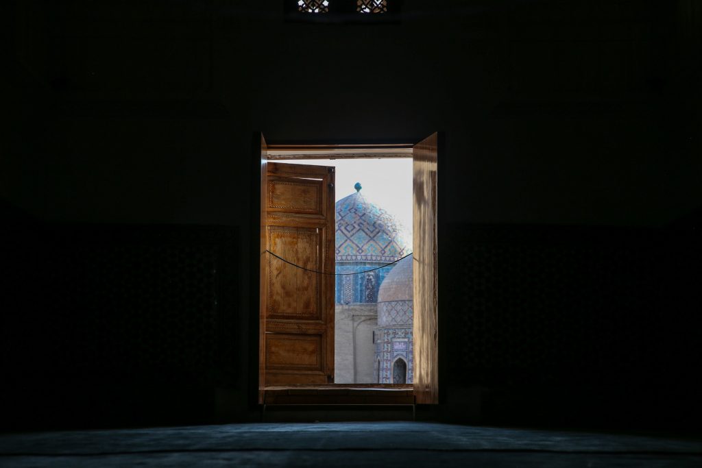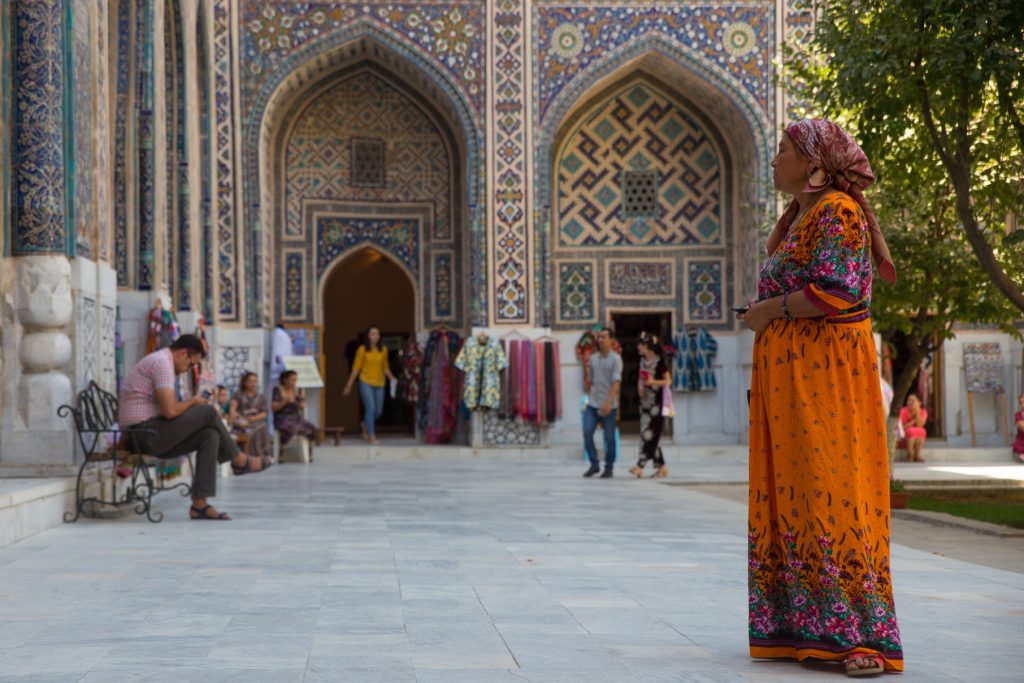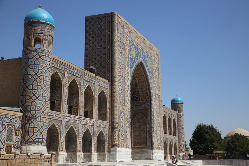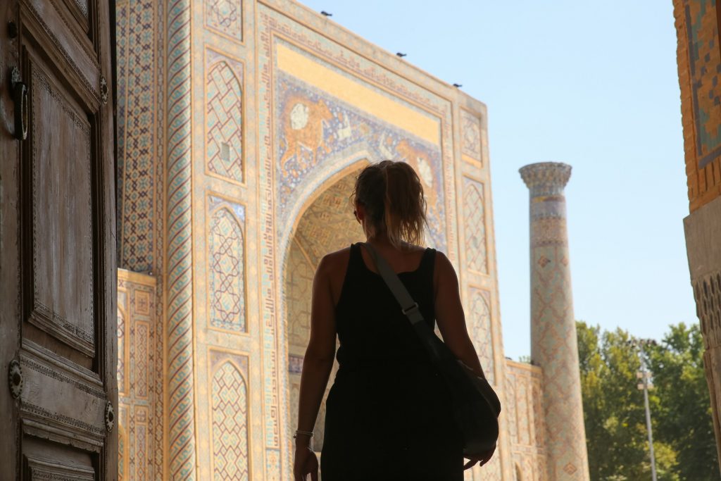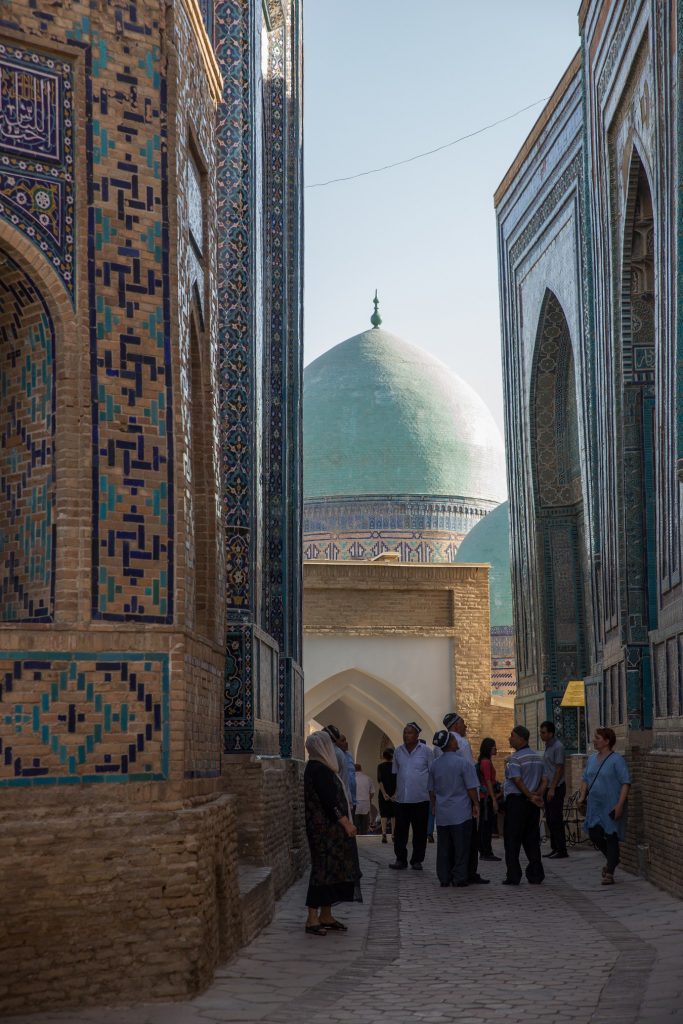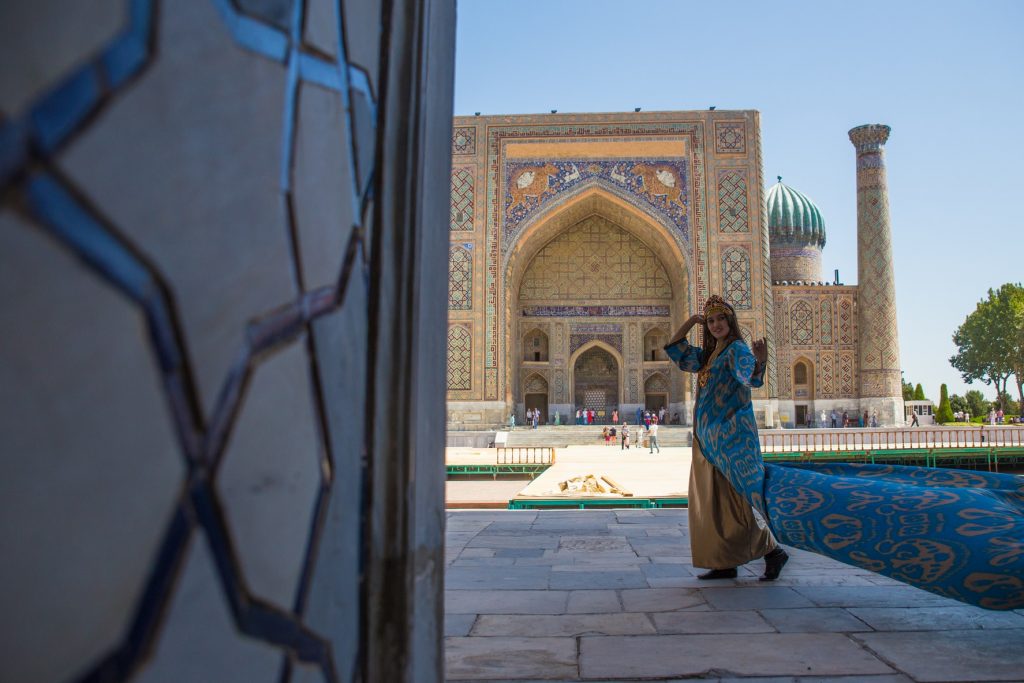 On ressort avec les yeux qui pétillent, on descend la rue Tashkent pour arriver à la grande mosquée de Timur. C’est l’un des monuments phares de la ville et nous sommes presque seuls dedans. Beaucoup de touristes ouzbeks sont aussi là en visite, aussi émerveillés que nous, certains veulent qu’on les prennent en photo même s’ils ne les verront jamais. On laisse notre email tout de même !