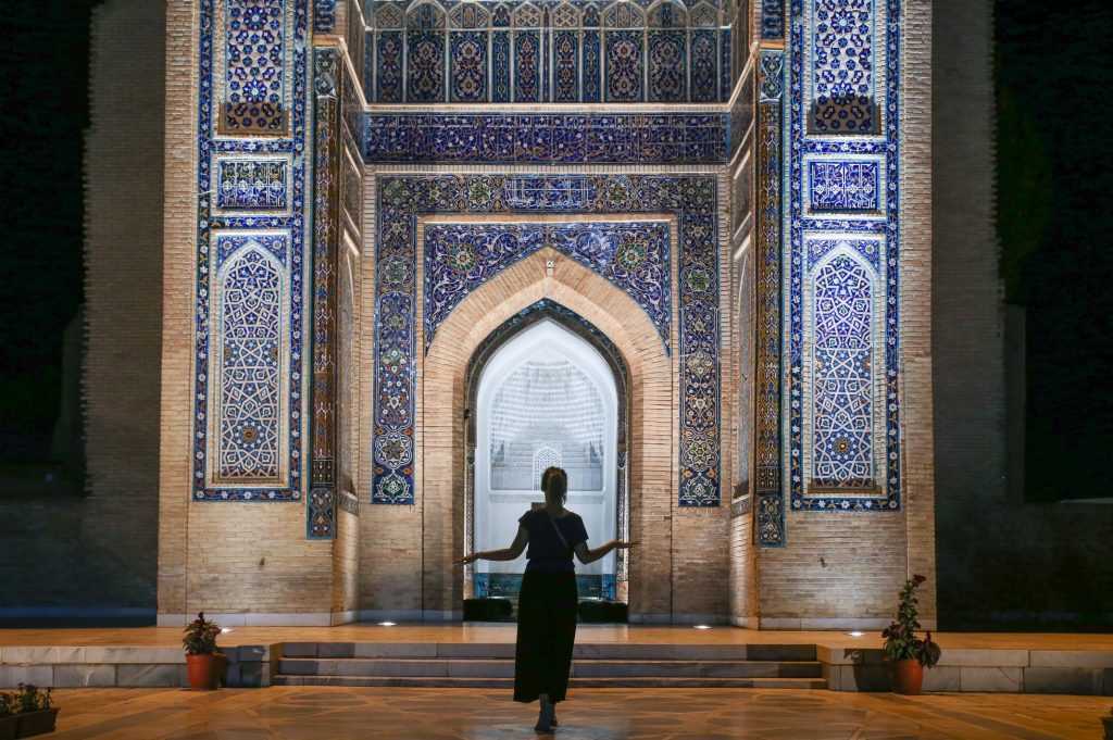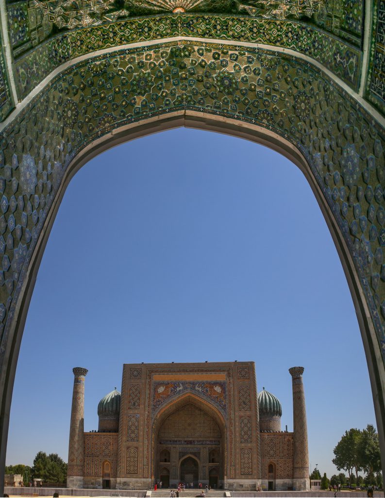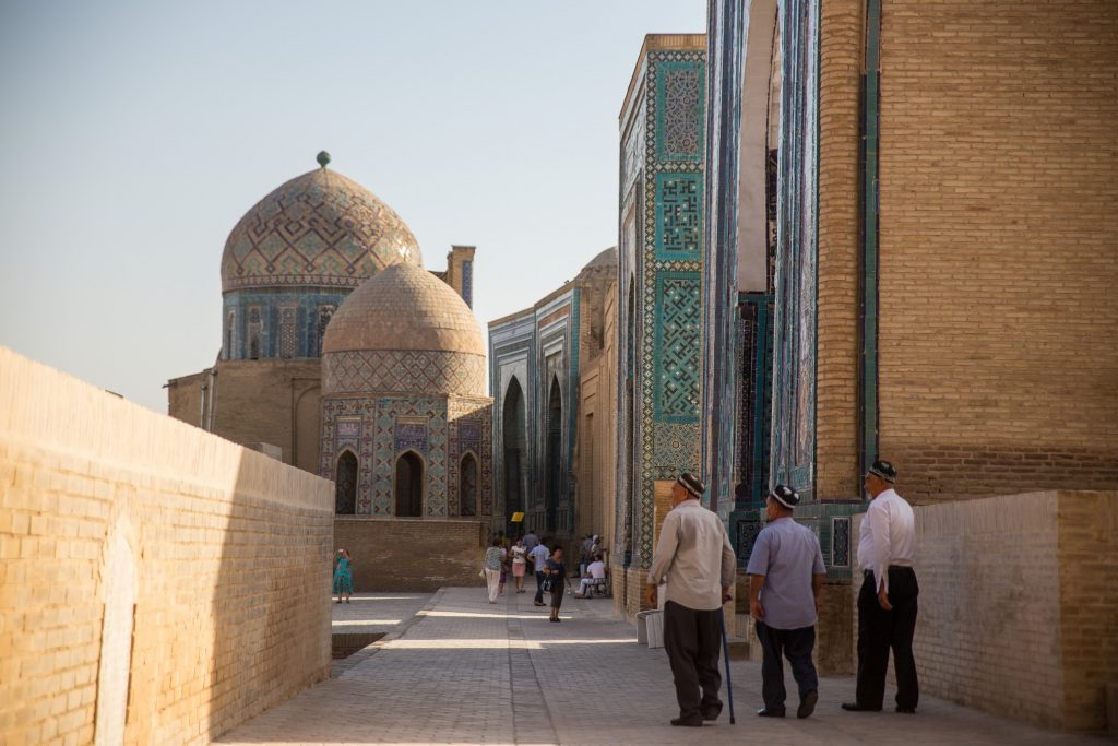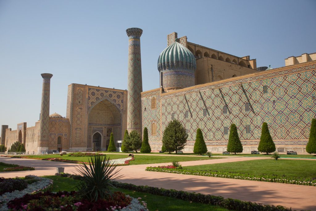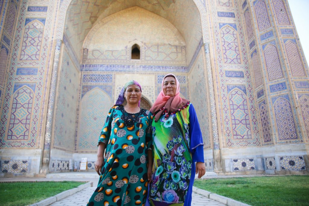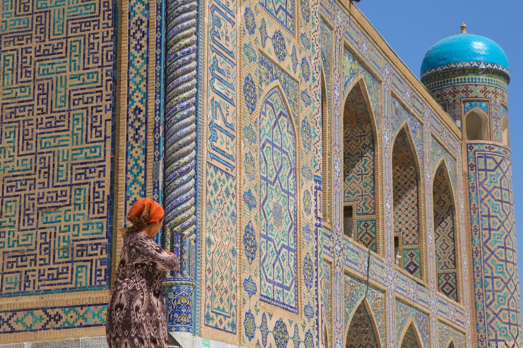 On ressort avec les yeux qui pétillent, on descend la rue Tashkent pour arriver à la grande mosquée de Timur. C’est l’un des monuments phares de la ville et nous sommes presque seuls dedans. Beaucoup de touristes ouzbeks sont aussi là en visite, aussi émerveillés que nous, certains veulent qu’on les prennent en photo même s’ils ne les verront jamais. On laisse notre email tout de même !