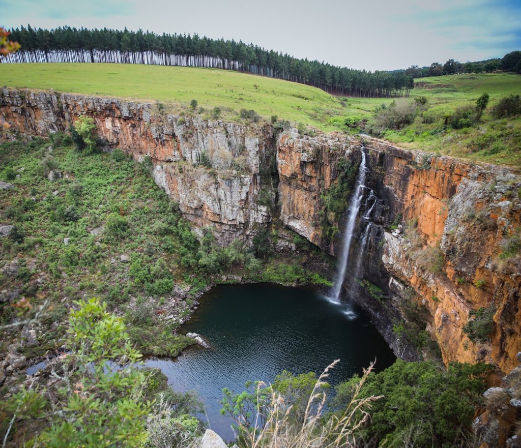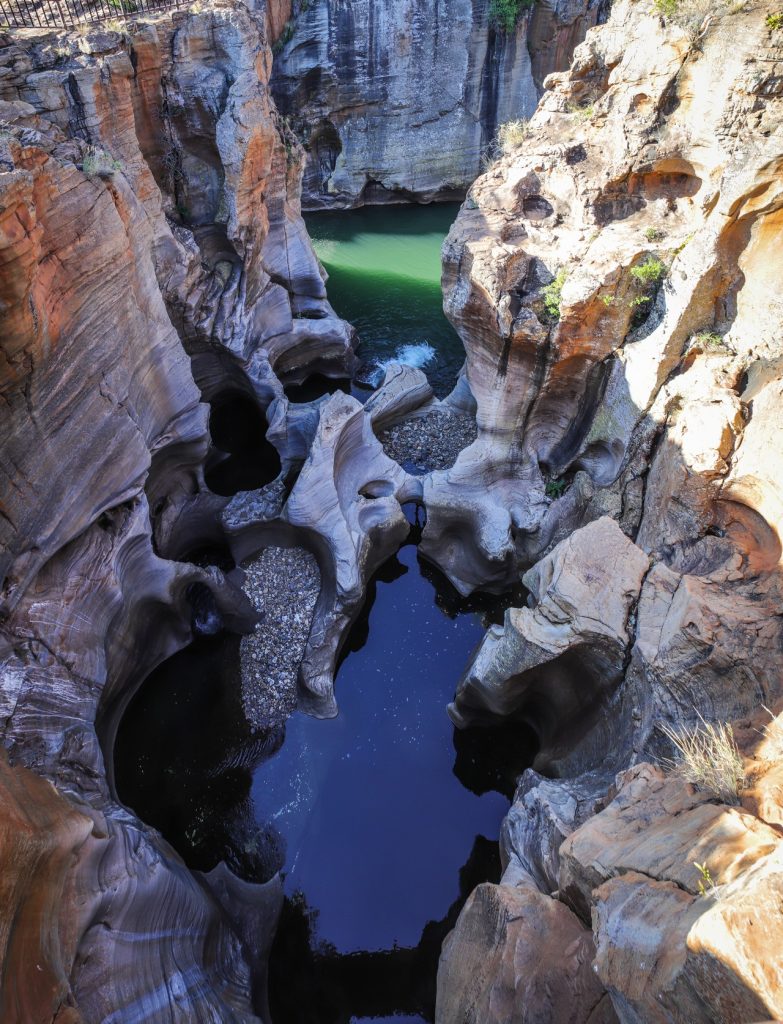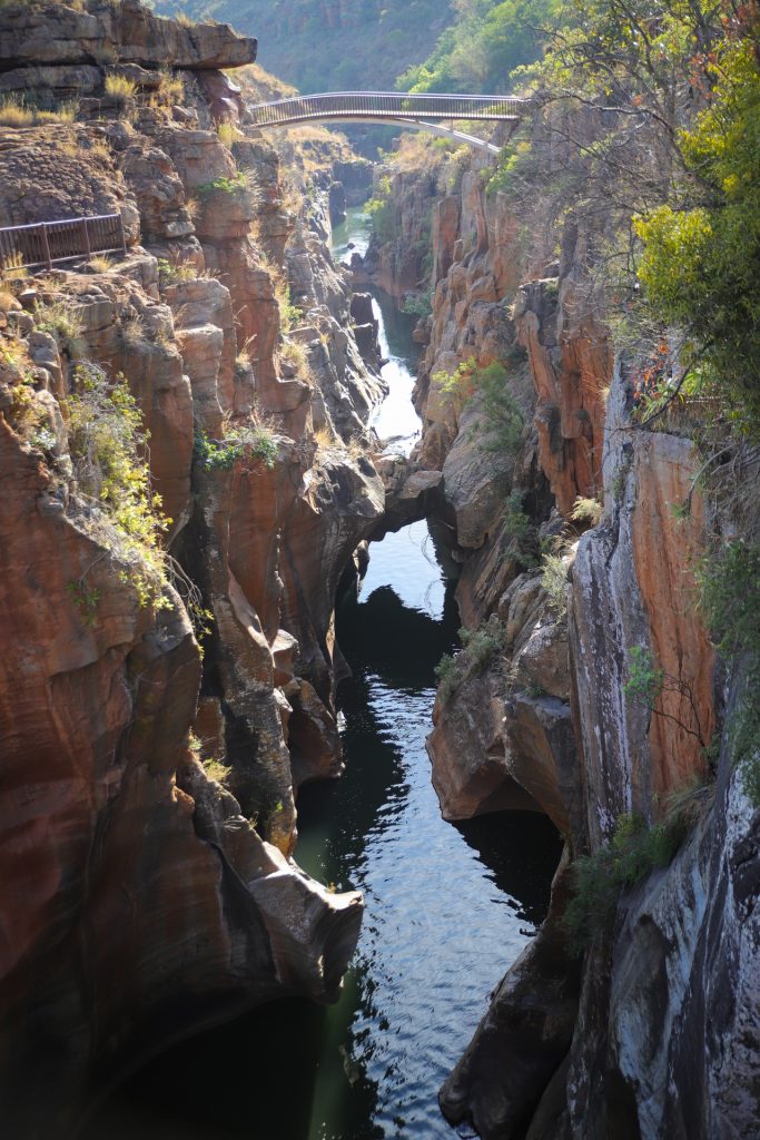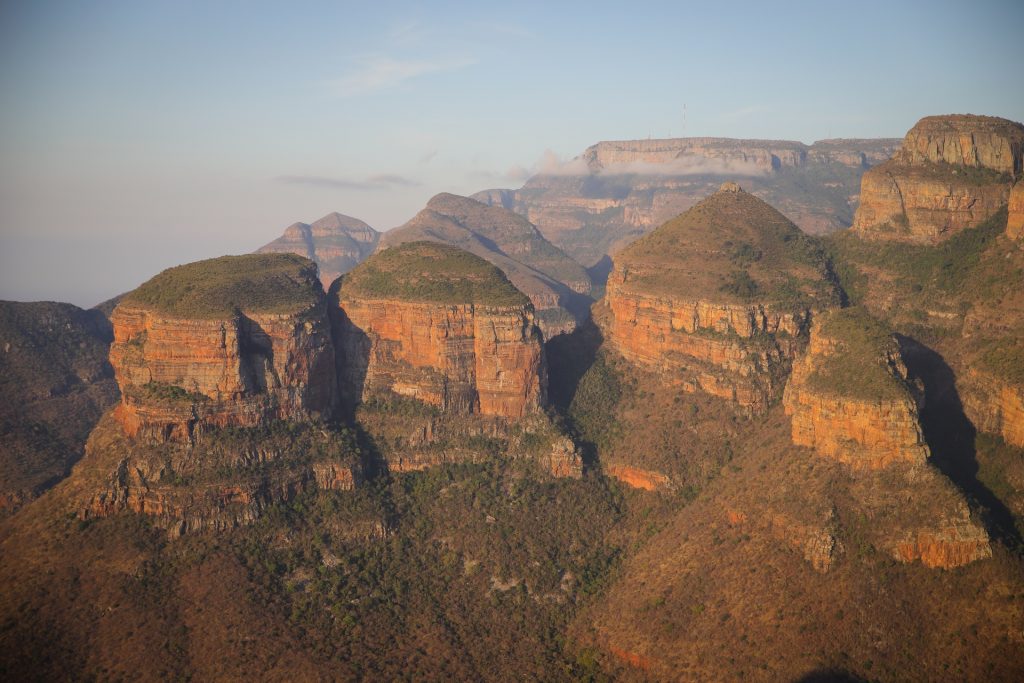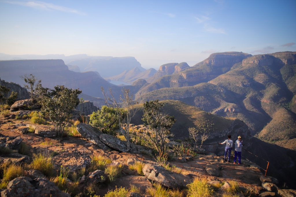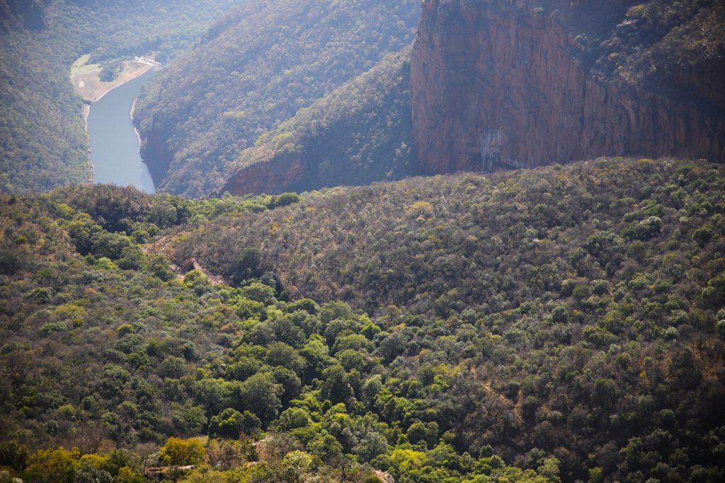 Quelques cinq heures de route après avoir quitté l’aéroport de Johannesbourg, nous arrivons dans un brouillard épais à Graskop. On ne voit pas à 10m même au matin alors on prend la route en direction du Blyde River Canyon. Le brouillard se dissipe lentement et nous laisse profiter de la vue aux quelques cascades qui parcourent le chemin, les Lisbon et Berlin waterfalls notamment, hautes de 60m et 90m.