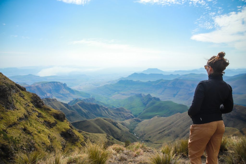Le premier jour on se rend dans le parc de Giant’s Castle, situé au centre/sud du Drakensberg. On prend un chalet non loin de là au White Mountain Lodge, au bord d’un petit lac, pour passer la nuit au chaud. Au réveil, direction la randonnée de « World’s View », une ballade de 4h jusqu’à un point de vue central entre deux vallées. Chouette promenade malgré le temps qui se gâte et qui nous prive des montagnes en toile de fond.