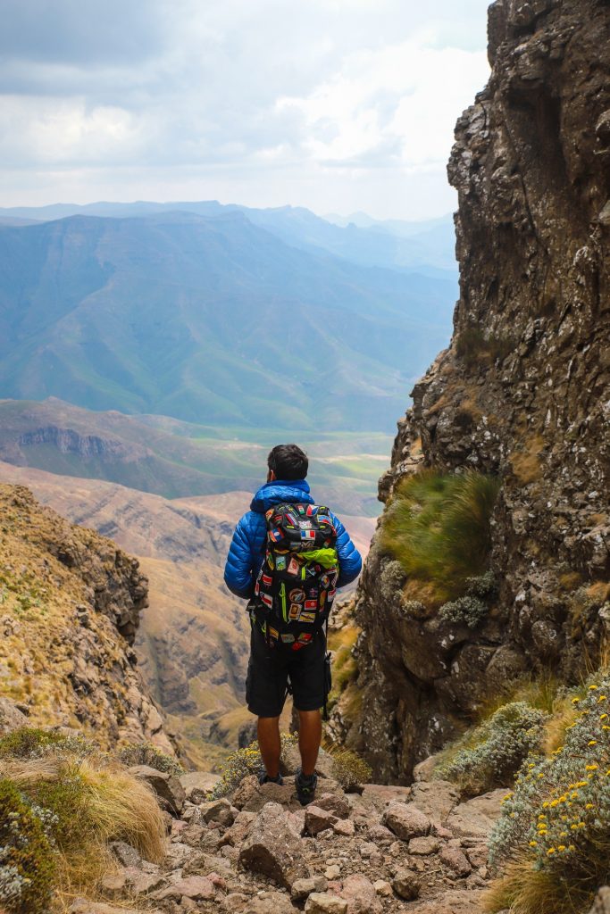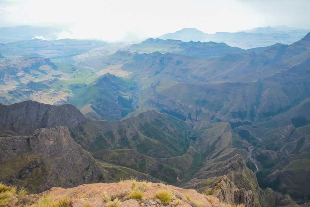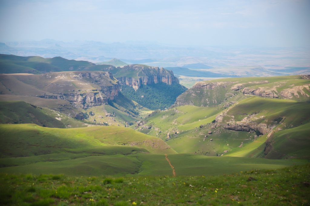 Le Drakensberg est une grande chaine de montagnes qui borde le Lesotho, ses nombreux sommets oscillent entre 3000m et 3400m d’altitude, mais sont bien loins des chaînes escarpées des Alpes ou de l’Himalaya. Non ici on est sur du sommet à tête plate, du haut plateau d’altitude qui se serait d’un coup fracturé. Du coup quand on arrive dans la région on a l’impression d’être face à un graaaaand mur.