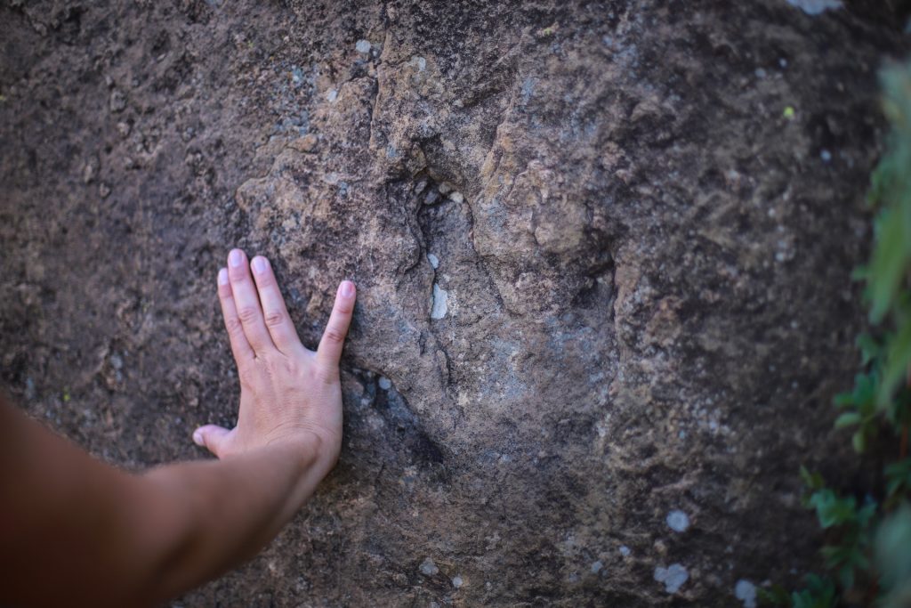 On voit à Morija la première église du pays, car c’est ici que sont venus les premiers missionnaires catholiques, et on passe voir le mini-musée du village où l’on apprend, heu, des choses. Au lendemain, on fait la petite marche pour aller voir les empreintes de dino. Un gros rocher domine la ville et l’on y voit clairement les traces de pas d’un petit carnivore à deux pattes. Difficile d’imaginer que ce rocher c’était avant de la terre et que ce baladait ici des petits monstres…