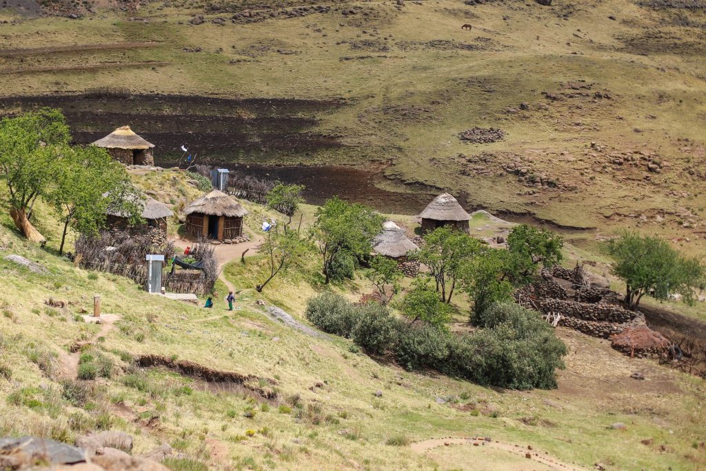 Après une nuit pas facile sur notre matelas qui se dégonfle dans la chambre dégueulasse de Jeremy (on pouvait pas tout avoir), on prend la route en direction du Parc National Tsehlanyane. Sur le chemin les villages sont tous plus jolis les uns que les autres. On arrive en bout de piste dans un luxueux lodge au milieu du parc, c’est de là que par notre ballade intitulée « Black Pool ». On marche pendant 2-3hr à flanc de vallée en évitant les serpents pour finalement arriver à une rivière bien pauvre en eau mais bien rafraichissante quand même ! Le parc étant sympa mais nous paraissant assez morne et monotone, on décide de ne pas camper là et de prendre la route pour le village de Morija.