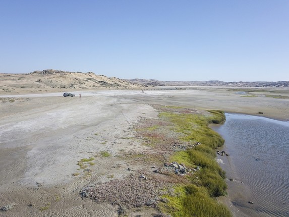 On roule vers Diaz Point à 20km de piste du centre, dans un paysage assez irréel. On arrive à la péninsule où l’explorateur portugais du même nom (Diaz donc) mis le pied pour la première fois en Namibie. On y trouve un autre camping, tout vide, dominé un phare majestueux. Les rochers font face à la mer et au soleil couchant et à 50m devant nous, une île minuscule où sont posés quelques dizaines d’otaries à fourrure du Cap. A peine le soleil tombé à l’eau que l’obscurité se fait et c’est la fête à l’étoile, la voie lactée se trouvant alors directement au dessus de l’horizon.