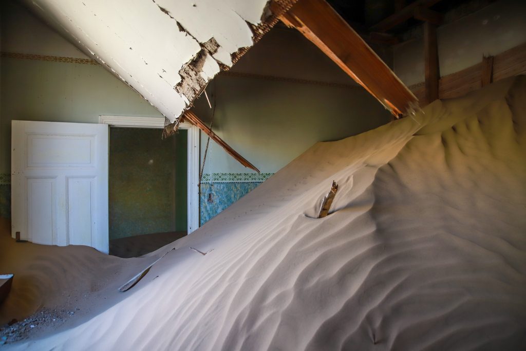 Laissé complètement à l’abandon, le village est rapidement envahi par le sable qui avance inexorablement et monte chaque jour de niveau à l’intérieur même des habitations. Il est ainsi possible de visiter toutes les maisons où le sable monte parfois au niveau des portes. On y trouve aussi un hôpital glauque et plusieurs boutiques, la ballade est irréelle, et même si évidement tout ce ressemble un peu, on ne voit pas le temps passé…