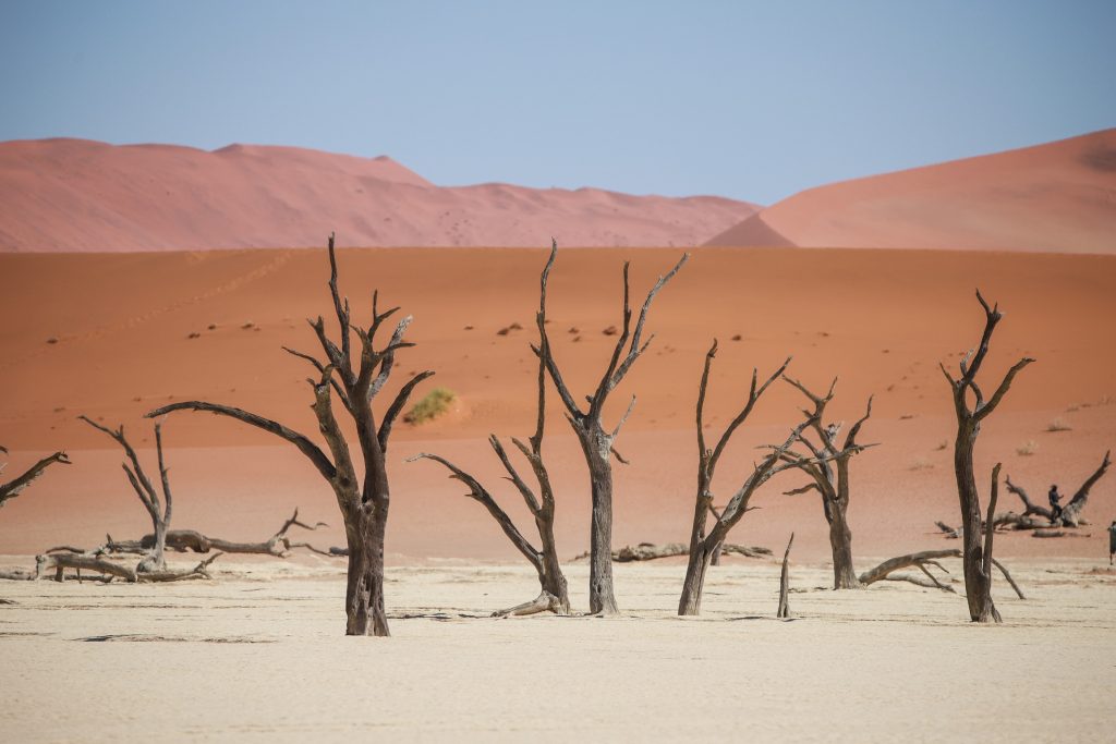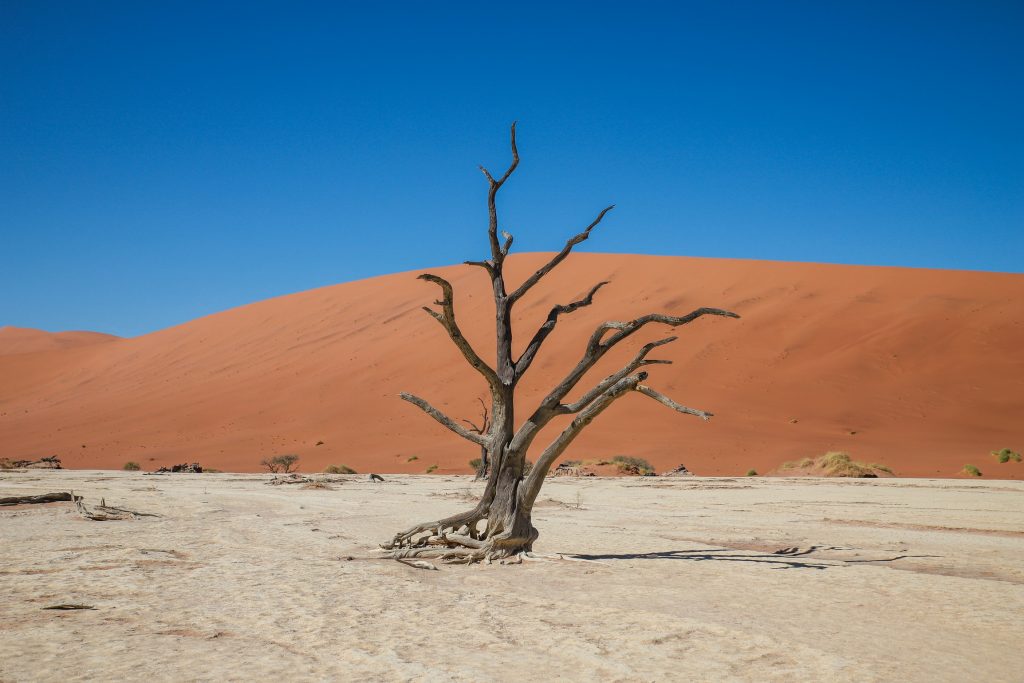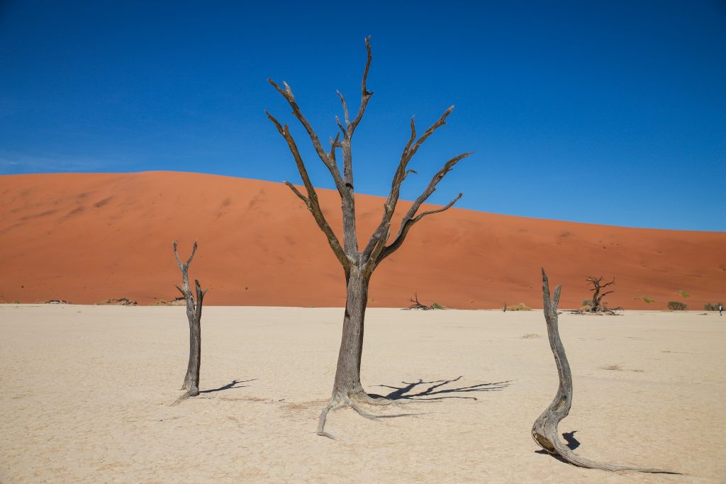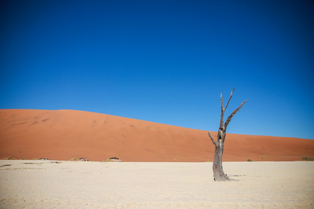 Nous y sommes. Sesriem, le désert du Namib ou les photos que vous aurez certainement le plus vu de Namibie, peut-être même sans le savoir, mais ces arbres secs, morts, sur un sol tout blanc, avec en arrière-plan des dunes de sables rouges, et bien ne cherchez plus, c’est ici.