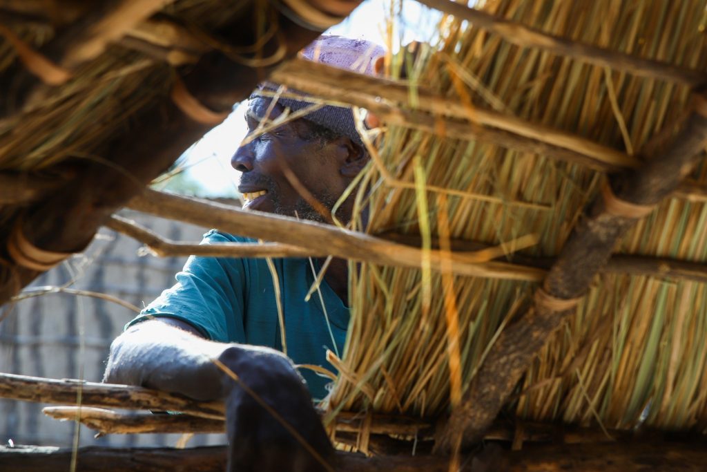 Pourtant il n’y a pas énormément de choses à faire, c’est le bout du monde. Alors on décide de prendre deux heures avec un guide local pour aller visiter un petit village à côté. On part à pied, le guide nous montre l’arbre qui sert à faire des brosses à dents, celui pour le parfum et finalement nous ouvre la porte non pas d’un village, mais d’un regroupement de huttes, ici une famille seulement. Le grand-père pose des fagots de paille sur un toit, la fille débarque un peu plus tard avec les enfants et la grand-mère. On fait connaissance, on nous explique un peu le fonctionnement ici, les coutumes de ces gens qui n’ont rien, à peine quelques animaux et qui survivent en allant pêcher à la rivière, cette rivière qui est tout pour eux et leur seule possibilité de boire… On apprends 1,2,3, soleil aux enfants, qui ne comprennent pas tout mais passent un bon moment puis on prend congé, rapides témoins de vies qui nous paraissent irréelles, en se promettant de leur envoyer au moins des vêtements…